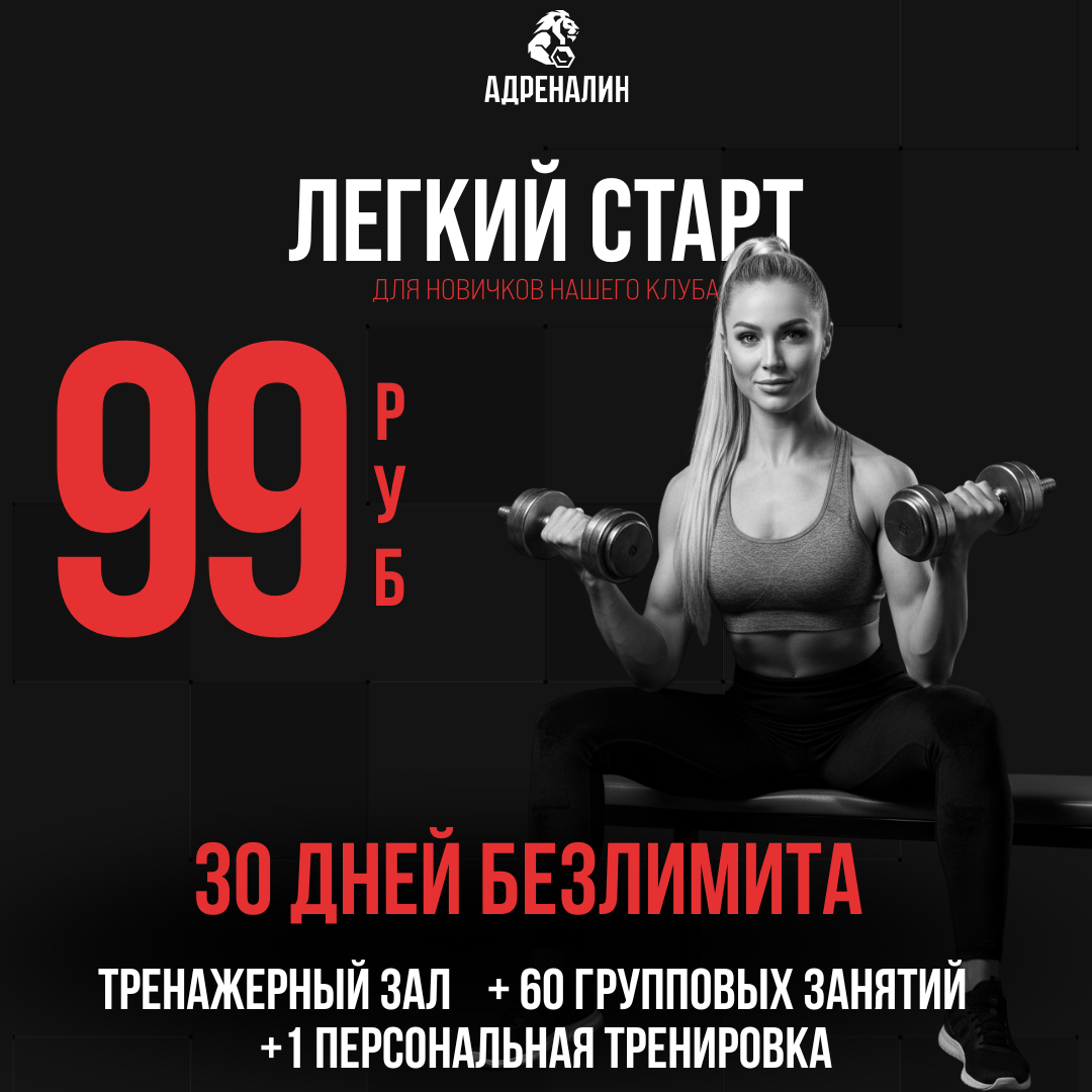 ⚠️ В акции могут принимать участие только новые члены именно нашего клуба Адреналин на Кальварийской, 33! Если вы посещали ранее другие клубы сети — для нас вы все равно новый клиент!